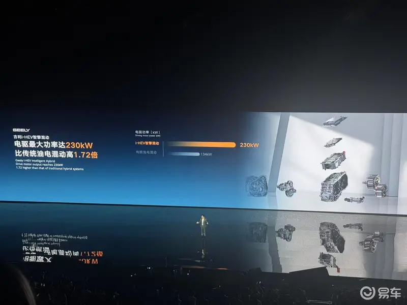 易车讯 4月13日,吉利汽车正式发布新一代i-HEV智擎混动技术,该技术搭载星睿AI云动力2.0大模型,整车综合节能提升10%+。搭载自研混动专用发动机,热效率达48.4%。电驱最大功率达230kW,比传统油电混动高1.72倍。