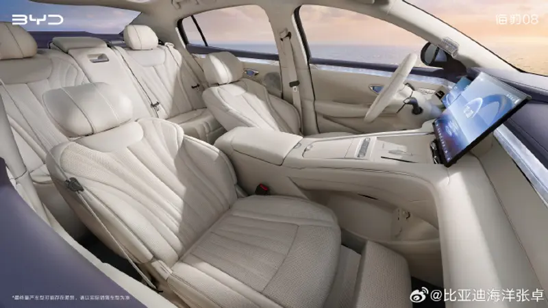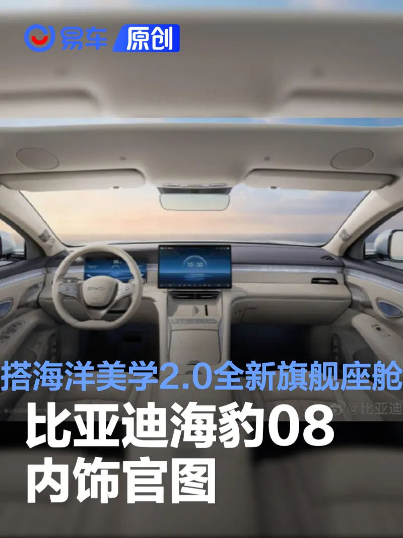 易车讯 4月15日,比亚迪汽车海洋网销售事业部总经理张卓,在社交媒体发布了比亚迪海豹08内饰官图,新车搭载海洋美学2.0全新旗舰座舱,以 “松弛之境 + 治愈之美” 为设计理念。