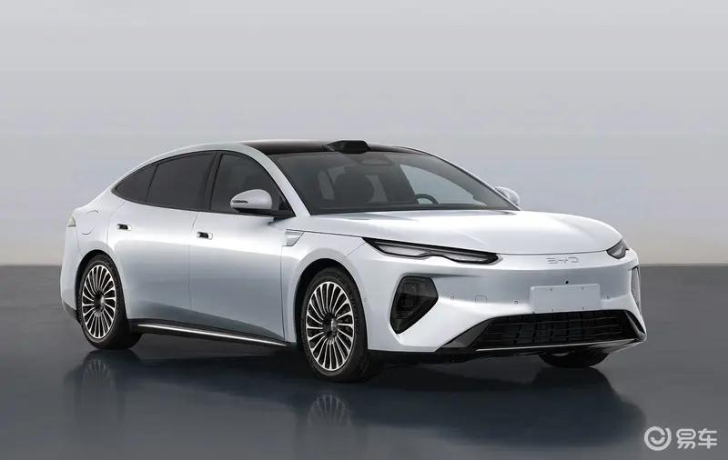 海豹08采用海洋美学2.0设计语言,前脸采用封闭式设计,纤细修长的大灯配备线条隆起的前舱盖,让前脸动感十足。值得一提的是,新车车顶配备了激光雷达,搭载比亚迪天神之眼B智能驾驶辅助系统。