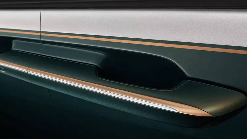 世纪CENTURY享专属淬金华彩纹饰,全车专属金标辉映,搭配门把手等处施以金色饰条点缀,勾勒豪华轮廓。织金华盖轮毂采用高级科技灰喷涂工艺,与车身纹饰形成呼应。