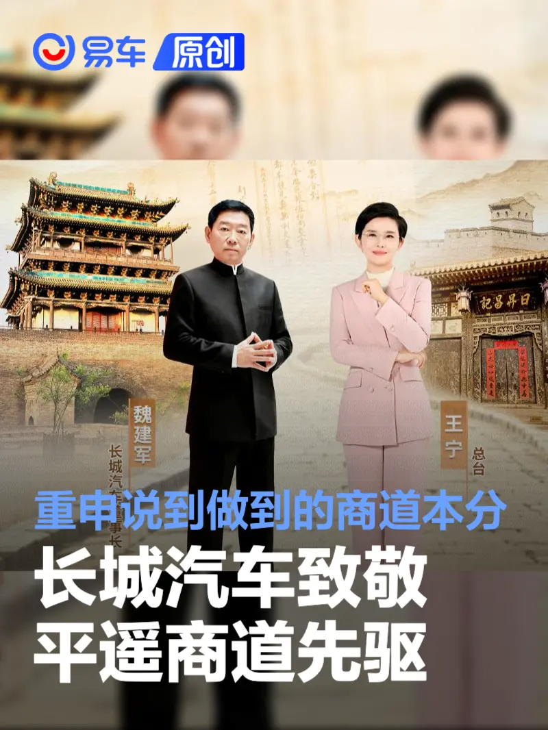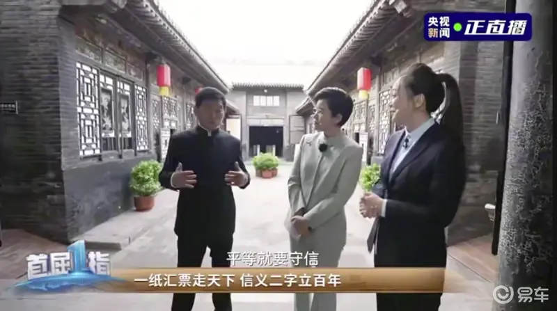 易车讯 平遥,这座屹立于晋中平原的千年古城,用两百年的票号传奇见证了中国现代金融的萌芽,沉淀下信义、担当、严谨、本分与守望相助的商道内核。4月16日,央视《首屈一指》特别直播节目走进平遥,长城汽车董事长魏建军与知名主持人王宁、平遥商道研究专家郝新喜等人展开了一场跨越时空的商道对话。在这场关于信用传承与实业本分的精神奔赴中,长城汽车溯源而上,以“致敬平遥契约精神”为主题,将平遥的信义底色融入现代工业实践。从一张汇票的“见票即兑”到一台汽车的“说到做到”,长城汽车正开启中国品牌与商业文明共生共荣的新征程。