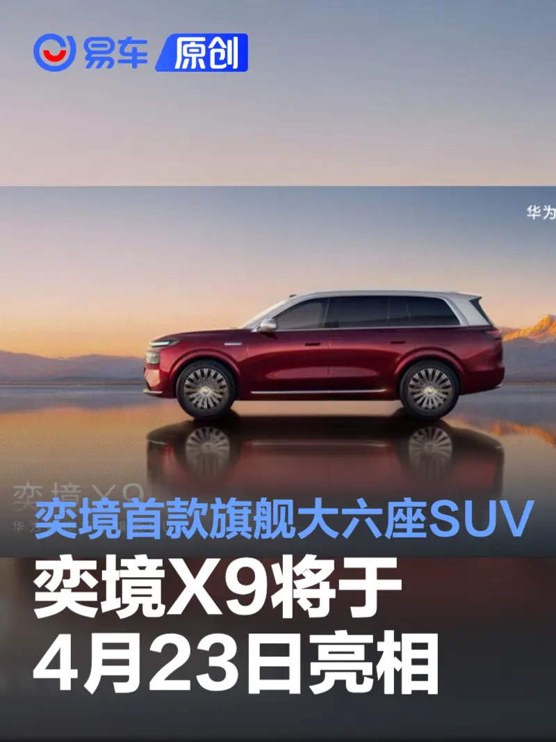 易车讯 4月20日,奕境汽车董事长汪俊君在社交媒体发布,奕境汽车首款旗舰大六座SUV奕境X9将于4月23日华为乾崑生态技术大会上首次亮相,4月24日北京车展全球展出。