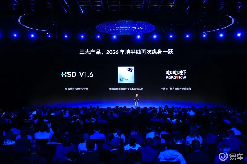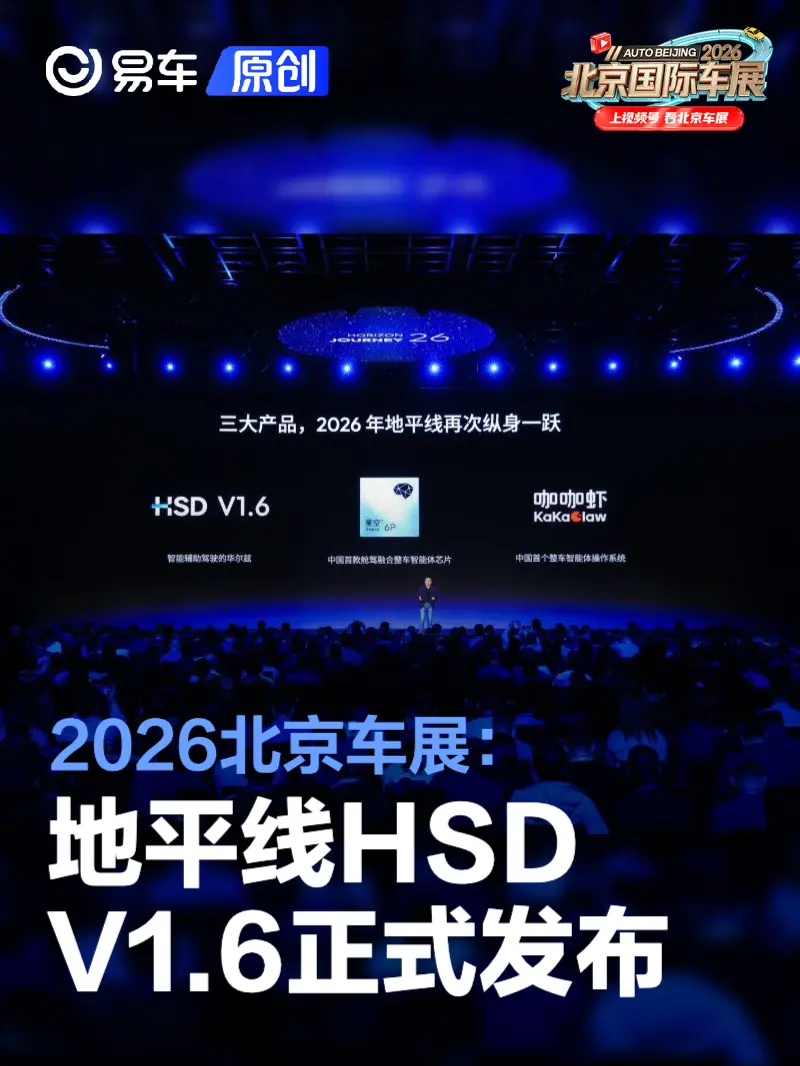易车讯 2026北京车展开幕前夕,在地平线2026年度产品技术发布会上,地平线HSD V1.6正式发布,与其一同推出的还有星空Starry 6P芯片、整车智能体操作系统KaKaClaw咖咖虾。
