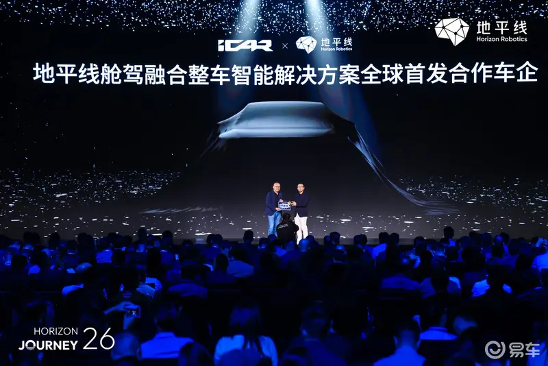 在2026地平线年度产品技术发布会上,iCAR品牌事业部总经理苏峻博士受邀登台,并与地平线创始人兼CEO余凯博士共同宣布,iCAR成为地平线舱驾融合整车智能解决方案的全球首发合作车企。