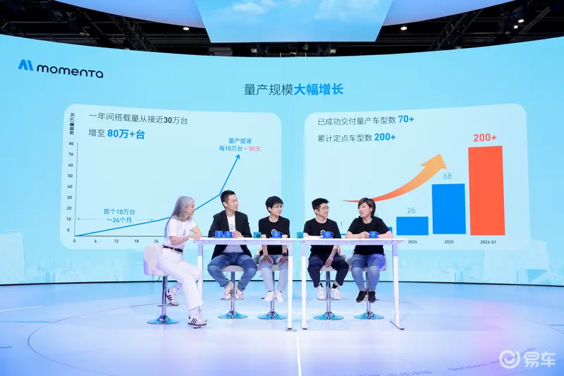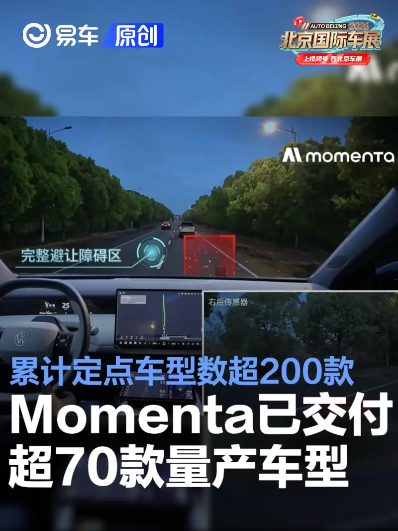 Momenta宣布,已成功交付超过70款量产车型,累计定点车型数超过200款,量产落地覆盖十余个国家和地区。搭载Momenta系统的量产车辆规模已超过80万台,最快不到40天即可完成10万台交付。本届北京车展,有超过20个品牌,60余款车型搭载Momenta方案,包括梅赛德斯-奔驰、奥迪、宝马新发布车型。