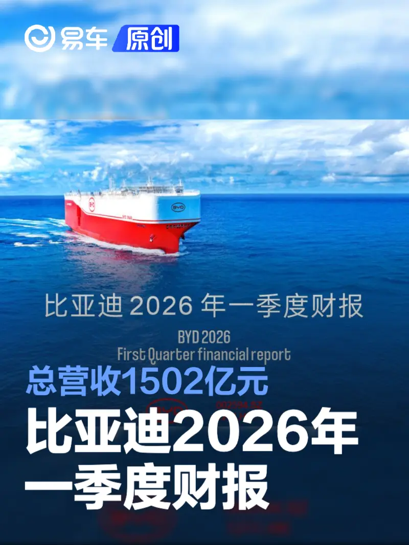 易车讯 4月28日,比亚迪发布2026年一季度财报,总营收1502亿元,毛利率环比提升18.8%,研发费用113亿元,归母净利润41亿元。